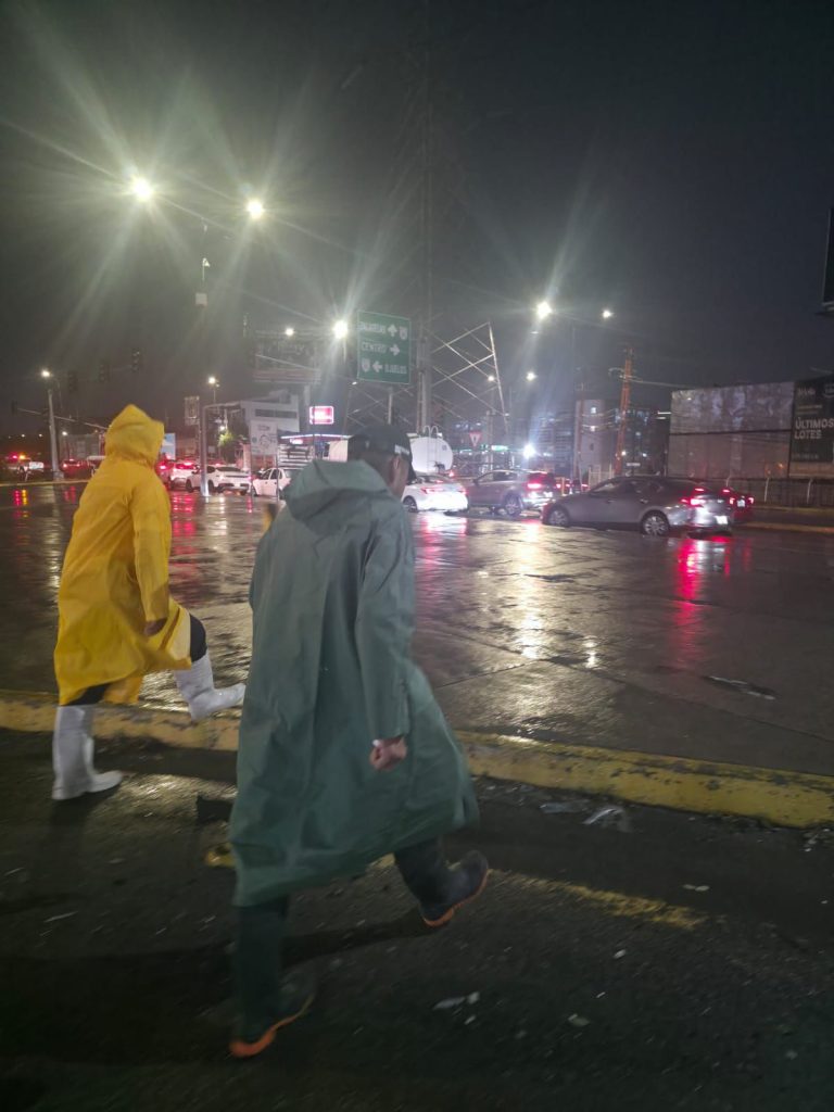 Se hizo presencia en el desnivel de Plaza San Luis, procediendo a prestar ayuda a conductores que resultaron afectados por la creciente. Se mantendrá este mismo esquema en dado caso que las precipitaciones pluviales continúen.