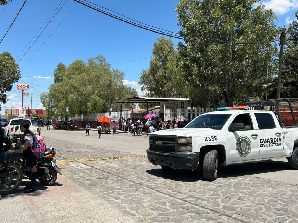 Desde temprana hora, agentes de la Guardia Civil Estatal (GCE), efectuaron recorridos y vigilancia en los planteles educativos de la entidad, en donde destacó saldo blanco durante el retorno a clases, tras el cierre del periodo vacacional.