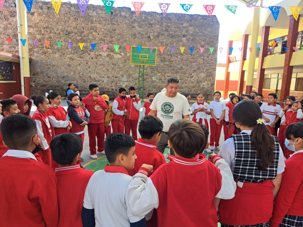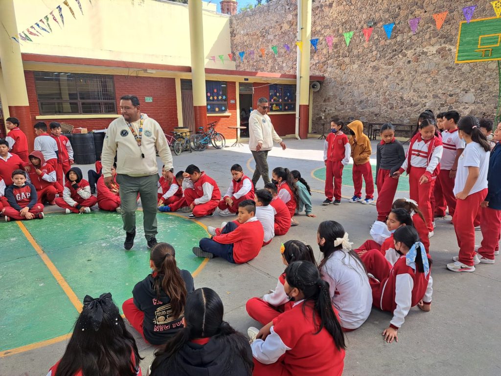 San Luis Potosí, S.L.P.- Por instrucciones del Señor Gobernador Ricardo Gallardo Cardona, con el apoyo del Secretario de Seguridad y Protección Ciudadana el Mtro. Jesús Juárez Hernández, del Comisario de la GCE Rosalio Ramos García, de la Jefa de Estado Mayor de la GCE la P.P. Claudia Ustoa Castro y la Asesora Janeth Segura de la GCE, ahora fue en el municipio de Villa de Reyes en la «Escuela Primaria Álvaro Obregón» ubicada en la Plaza Principal Zona Centro Villa de Reyes, S.L.P.