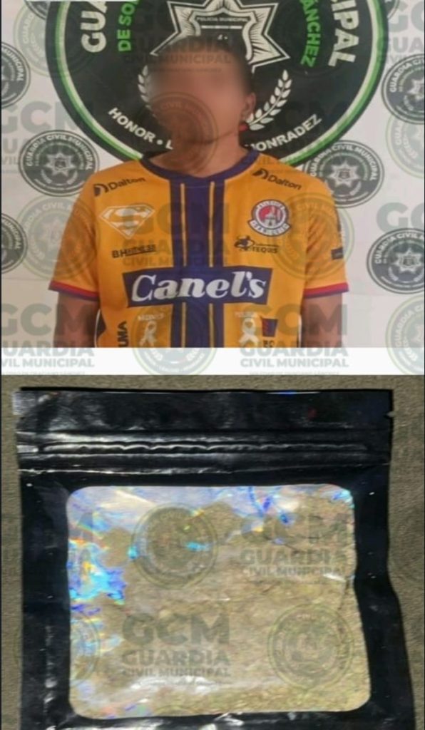 Belem “N” de 56 años fue detectada en Avenida San Lorenzo, en la colonia Vizcaya, localizándole un envoltorio con un vegetal semejante a la marihuana. Sobre la calle Mayas, de la colonia Hogares Ferrocarrileros Segunda Sección, oficiales municipales visualizaron a quienes dijeron llamarse Carlos “N” de 27 años y Jonathan “N” de 35, descubriéndoles un total de 10 bolsas con hierba que cumple con las características de la marihuana. Finalmente, en calle República de Perú, en la colonia Las Palmas, agentes municipales ubicaron a Luis “N” de 28 años, encontrándole una bolsa con hierba verde seca semejante a la marihuana.